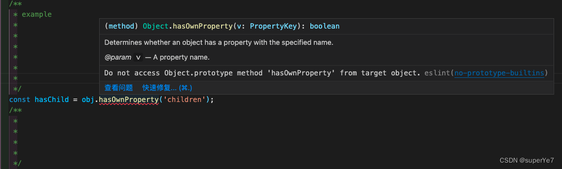 Do not access Object.prototype method 'hasOwnProperty' from target object.