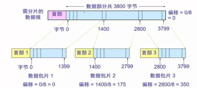 (7)片偏移:每个数据片不同时传输,标志着谋片在原分组中的相对偏移位置,以8字节为偏移单位;