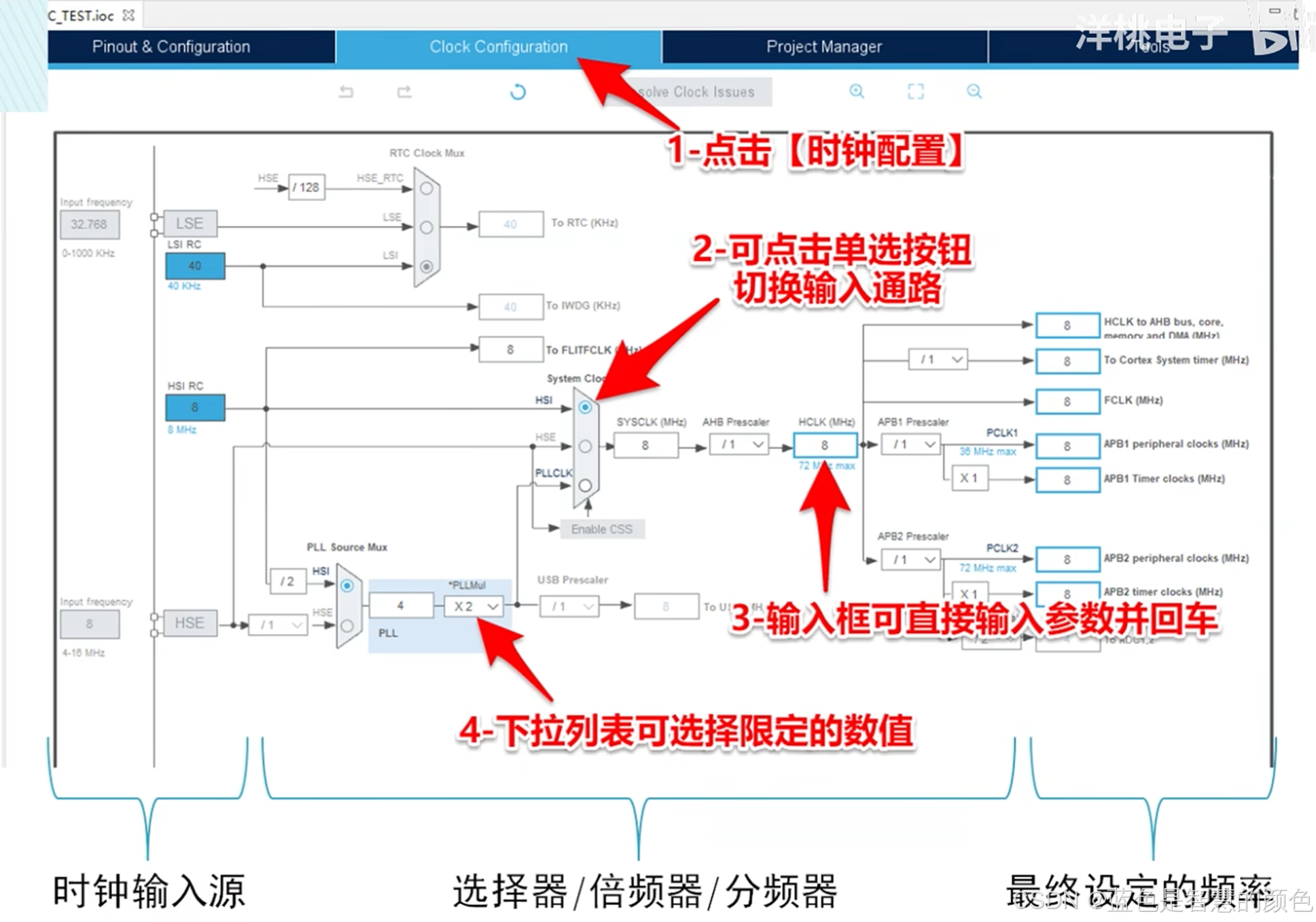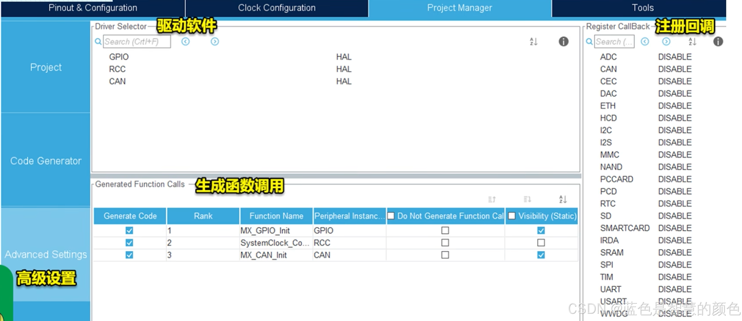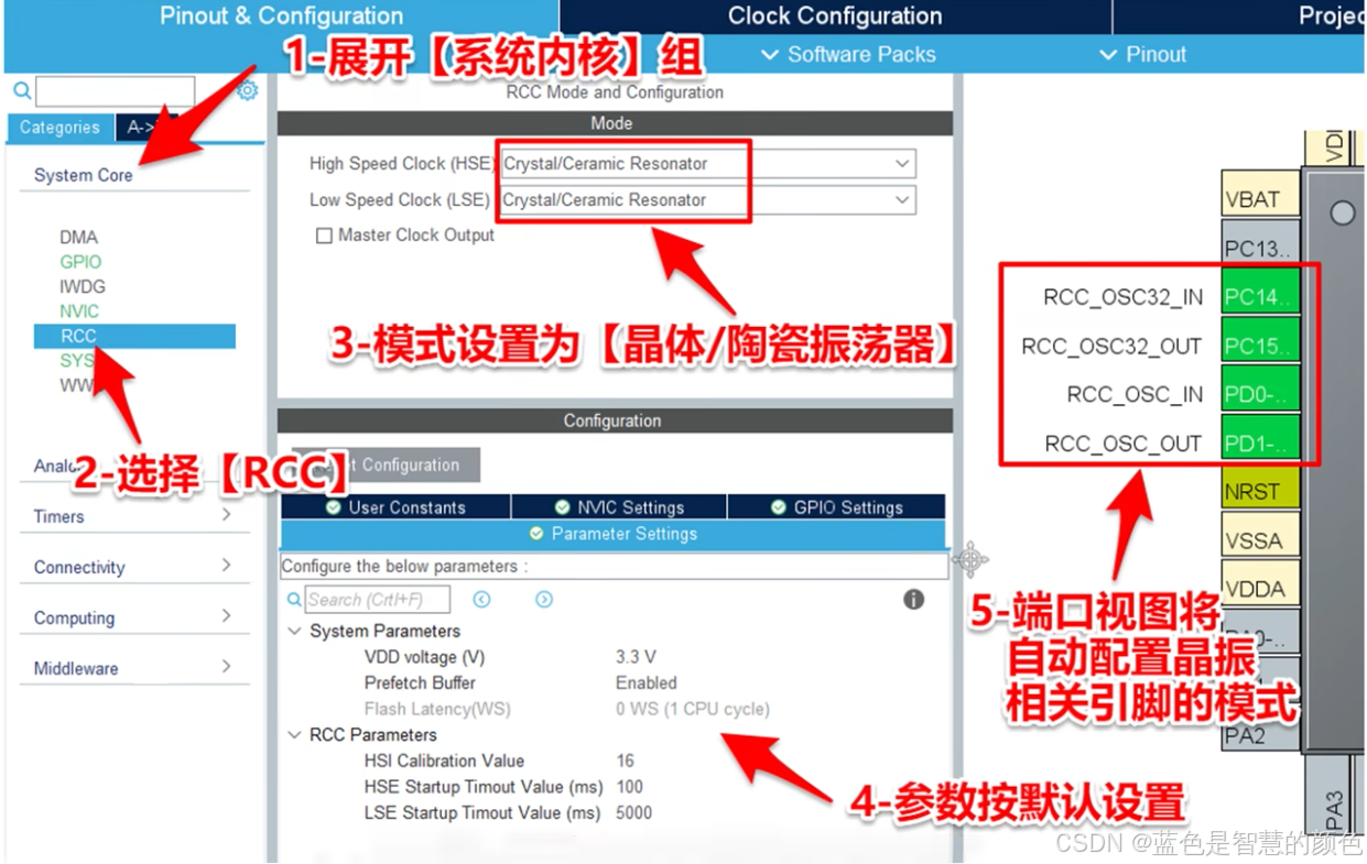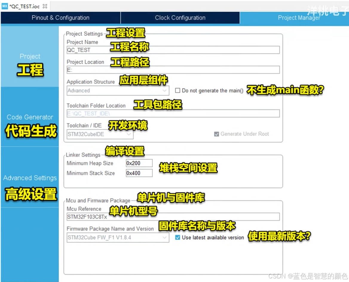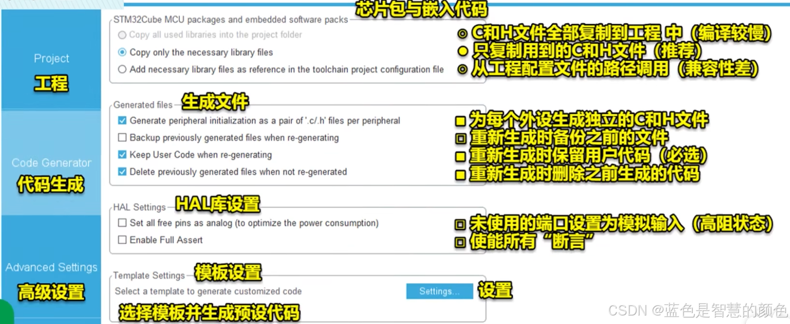 一、新建工程 1.选择单片机型号 2.填写工程名称和路径 3.配置hal库 二、图形化配置界面 1.功能选项界面 2.RCC系统时钟界面(根据需求选择) 3.引脚配置 4.时钟树配置!!! 5.工程管理!!! 三、程序编程界面