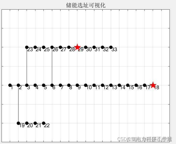 储能选址定容在智能算法中的实现过程不难,刚开始变量定义部分,主要是涉及储能选址的位置、容量和储能出力,以这两部分变量作为优化变量,通过设置最大值和最小值确定变量上下限范围。