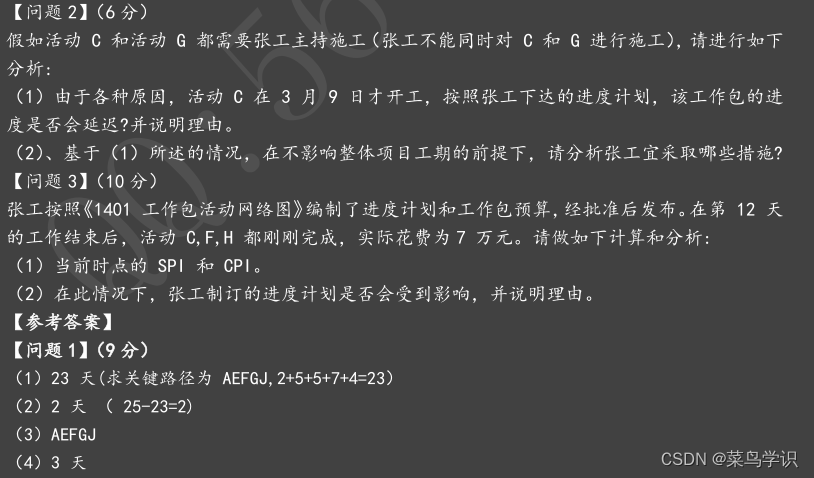 (3)F、G在规定进度之前1天完成,总工期是 24 天。