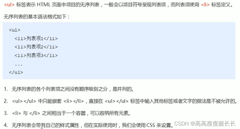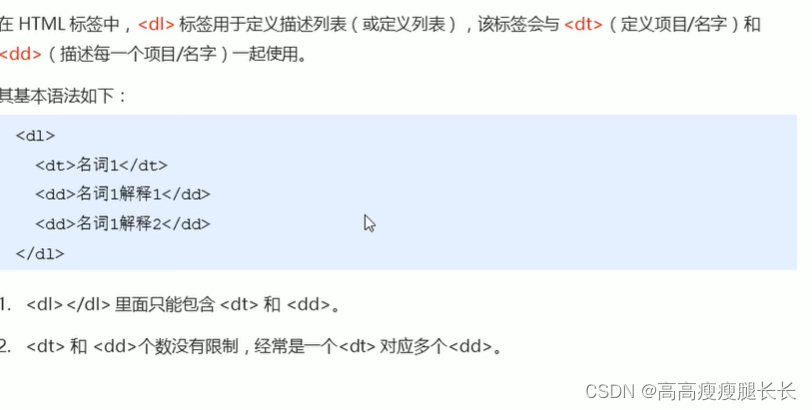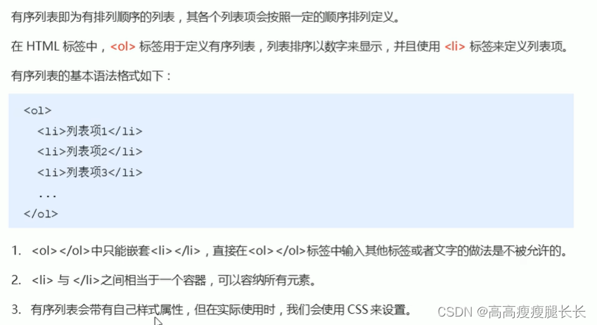 列表用来布局的,分为无序列表,有序列表,自定义列表。