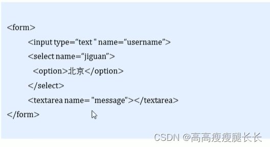 用来收集信息,一个完整表单信息通常由表单域、表单控件(表单元素)和提示信息三个部分构成