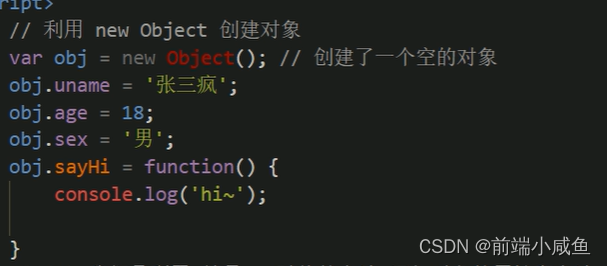 对象字面量:就是 { } 里面包含了表达这个具体事物(对象)的属性和方法。