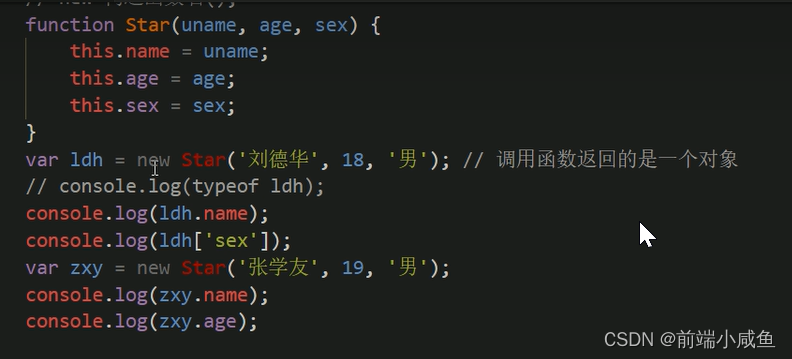 5、我们只要 new Star() 调用函数就创建一个对象 ldh { }