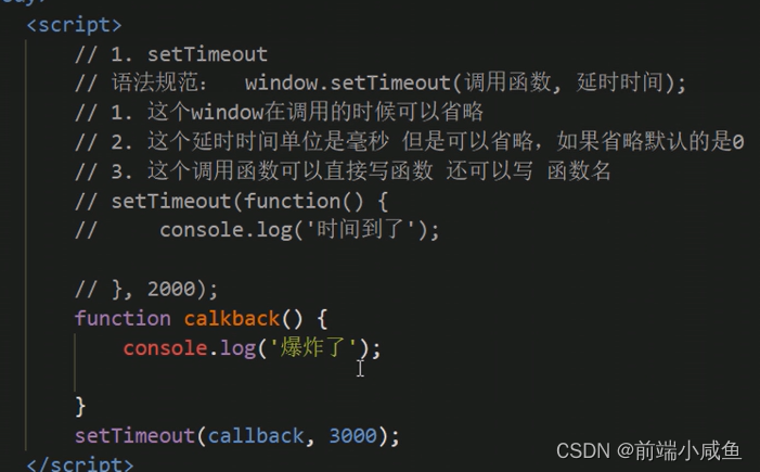 setTimeout 延迟时间到了,就去调用这个函数,只调用一次,就结束了这个定时器