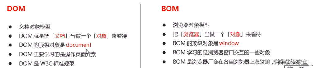 BOM缺乏标准,JavaScript语法标准化组织是ECMA,DOM标准化组织是W3C,BOM最初是Netscape浏览器标准的一部分