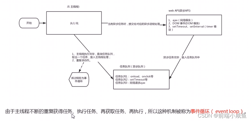 3、一旦执行栈中所有的同步任务执行完毕,系统就会按照次序读取任务队列中的异步任务,于是被读取的异步任务结束等待状态,进入执行栈开始执行。