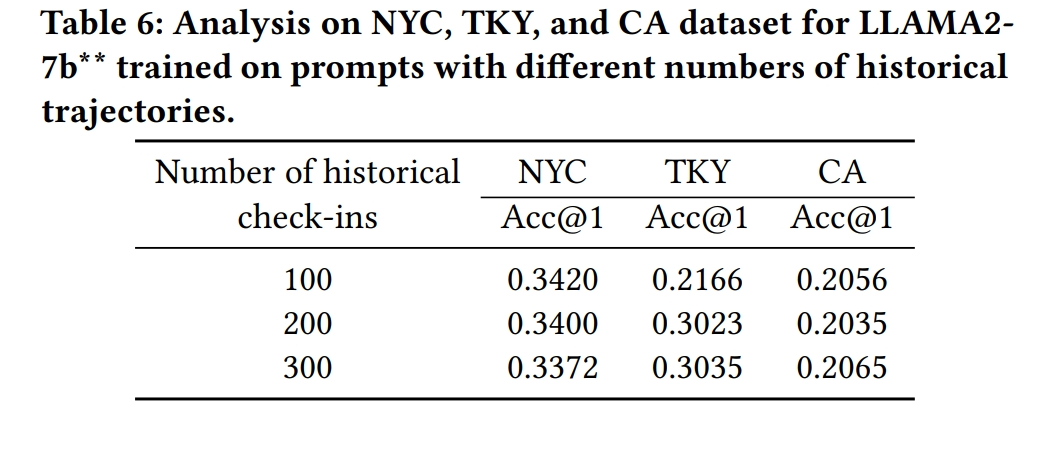 - 结论:论文证明了利用LLMs进行下一个POI推荐任务的潜力,并展示了模型在未见数据上的泛化能力,同时指出了当前方法的局限性和未来改进的可能方向。