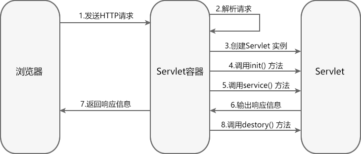 加载和实例化阶段(loading and instantiation):当 Servlet 容器启动或者第一次请求某个 Servlet 时,会加载并创建 Servlet 对象的实例。在此阶段,容器会调用 ServletContext 的 getServlet 方法来获取 Servlet 实例,并调用其 init 方法进行初始化。在 init 方法中,Servlet 可以进行一些初始化工作,如加载配置文件、建立数据库连接等。