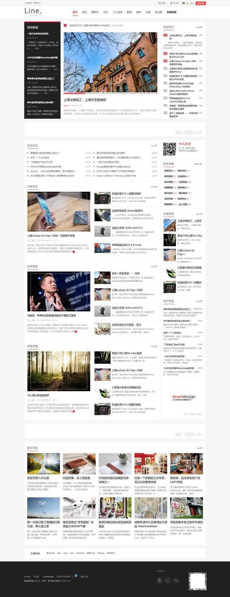价值360元的Discuz杂志/新闻报道模板(jeavi_line)UTF8-GBK模板下载,该模板后台可自定义主配色;