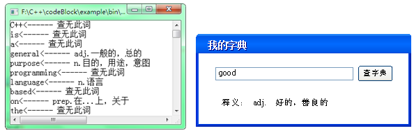 【项目3拓展2(选做)】试用wxwidgets做一个窗口版的电子词典,如下右图所示: