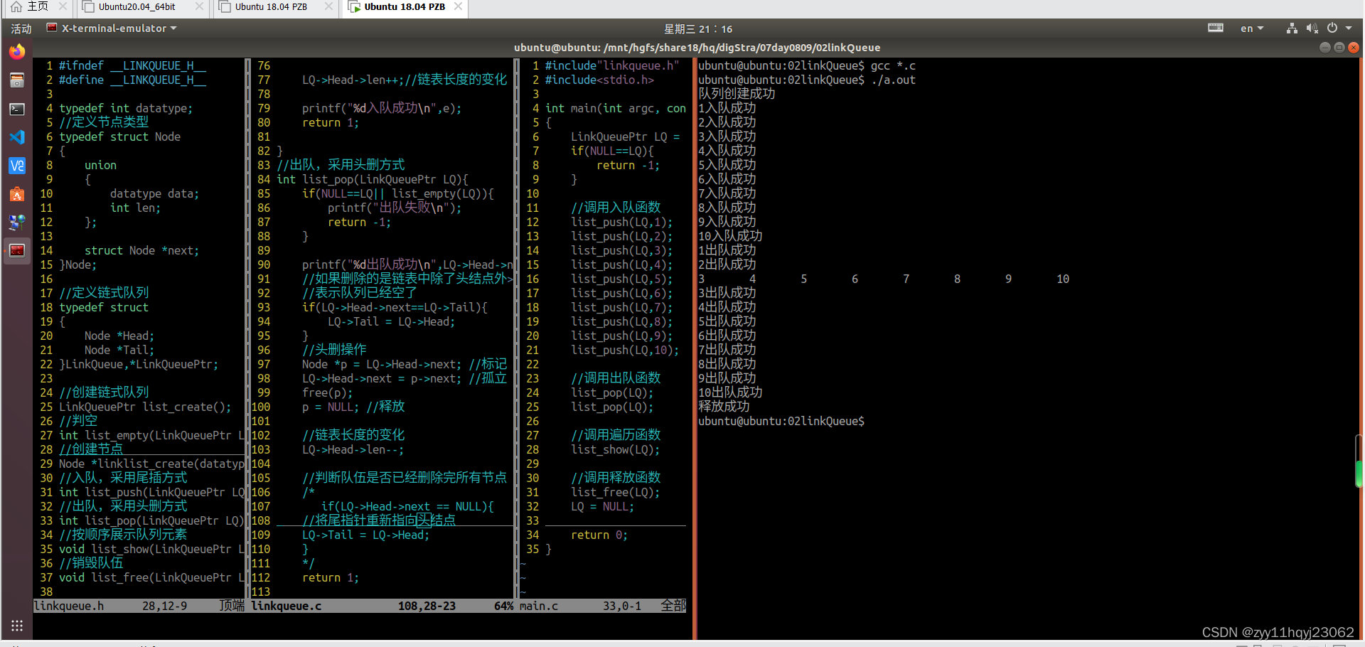 printf("%d出队成功\n",LQ->Head->next->data);