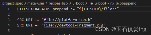 当修改uboot配置时,会生成u-boot-xlnx-xilinx-v2020.1/oe-local-files/devtool-fragment.cfg文件,将这个文件复制到project-spec/meta-user/recipes-bsp/u-boot/files下,然后在u-boot-xlnx_%.bbappend文件中添加这个补丁。