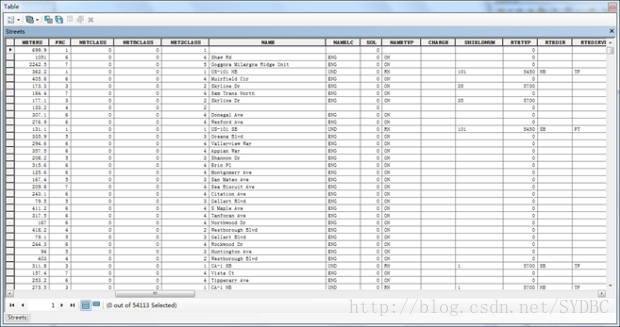 下面的属性结构是ArcGIS实验数据ArcTutor中的路网数据结构(比较复杂),发布路网服务后经silverlightAPI代码测试,网络分析功能可以正常执行。实际上只要我们把自己路网数据结构修改成与下图所示的路网结构,程序调用时就不会出现本文最开始提示框中的问题。