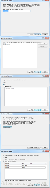首先,我们拷贝一份上面的路网数据并按照下面的步骤重新创建网络数据集。