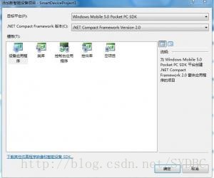 1、首先启动Visual Studio .NET 2008,并新建一个工程选择“智能设备”项目,然后在目标平台中选择Windows Mobile 5.0 Pocket PC SDK ,在.NetCompact Framework Version中选择2.0。