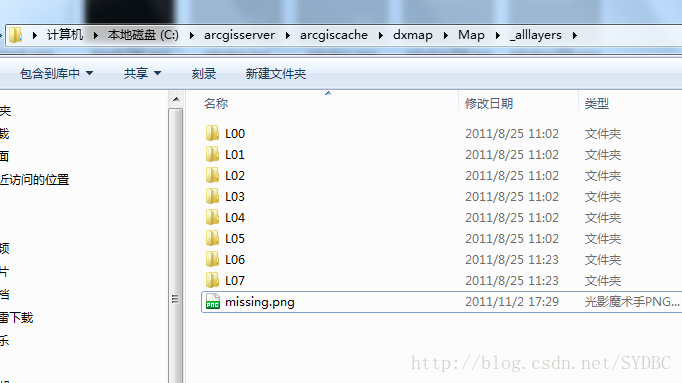 2、将图片拷贝到缓存目录下的_alllayers文件夹内,如C:arcgisserverarcgiscachedxmapMap\_alllayers