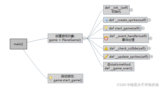 我们可以看到,主函数定义一个对象,其中对象的方法是start_game,并运行这个方法。