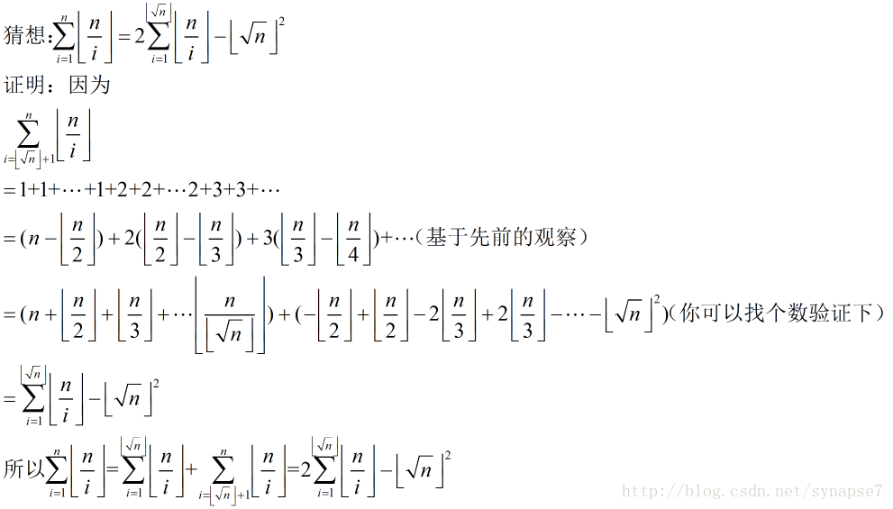 怎么计算sum{ [n/i] }?(1<=i<=n)(n<=2147483647)