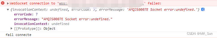 "errorMessage": "AMQJS0007E Socket error:undefined."