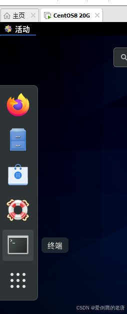 我们登录系统之后就已经打开了 图形终端,在图形终端中也给我们提供了一个可以用 linux 命令控制系统的工具,我们点击屏幕左上角的“活动”就可以找到这个它。