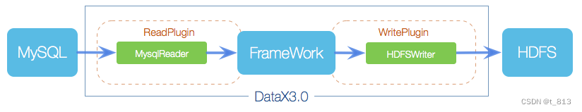 数仓工具使用-Datax DataX 是阿里推出的一个异构数据源离线同步工具,致力于实现包括关系型数据库(MySQL、Oracle等)、HDFS、Hive、ODPS、HBase、FTP等各种异构数据源之间稳定高效的数据同步功能。将DataX安装好之后, 仅需要配置Json的采集文件即可实现数据的同步DataX几个组成部分:Reader:Reader为数据采集模块,负责采集数据源的数据,将数据发送给Framework。Writer:Writer为数据写入模块,负责不断向Framework取数据,并将数据写入到目的端。