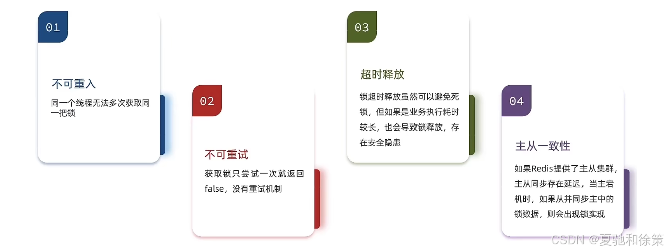 单用 setnx + 过期时间的 Redis 锁方案,虽然能解决基本的分布式锁问题,但存在重入性、自动续期、异常宕机、主从一致性等不足。