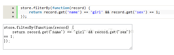 为store加载数据之后,有时不需要把所有数据都显示出来,这时可以使用函数filter和filterBy对store中的数据进行过滤,只显示符合条件的部分,如下面的代码所示。