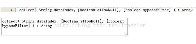 collect函数获得指定的dataIndex对应的那一列的数据,当allowNull参数为true时,返回的结果中可能会包含null、undefined或空字符串,否则collect函数会自动将这些空数据过滤掉。当bypassFilter参数为true时,collect的结果不会受查询条件的影响,无论查询条件是什么都会忽略掉,返回的信息是所有的数据,如下面的代码所示。