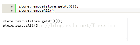 删除操作可以使用remove()和removeAll()函数,它们分别可以删除指定的record和清空整个store中的数据,如下面的代码所示。