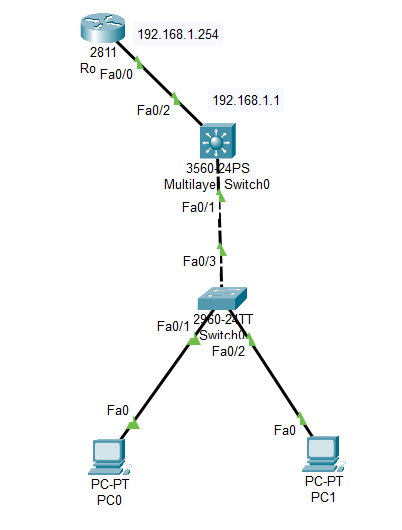 ④ 模拟器的接口和真机接口不一定相同,比如三层交换机真机接口是f1/0/0、f1/0/1等,而模拟器接口是f0/0、f0/1等。