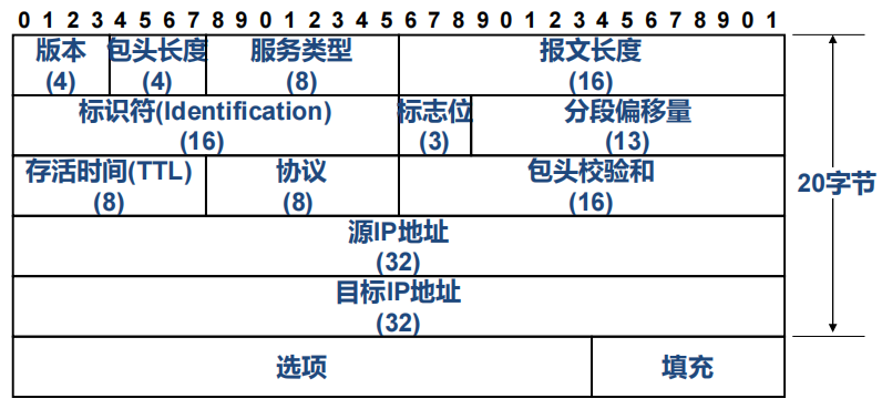 源 / 目标 IP 地址:各 32 位(IPv4 地址 ),标记数据的起点和终点。