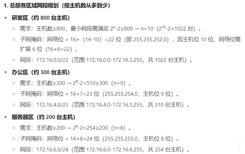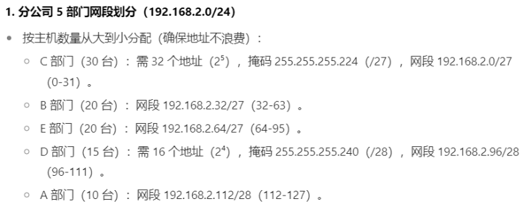 这类 企业网子网划分 题目,核心是 “按需分配、避免地址浪费”,解题步骤可总结为 4 步: