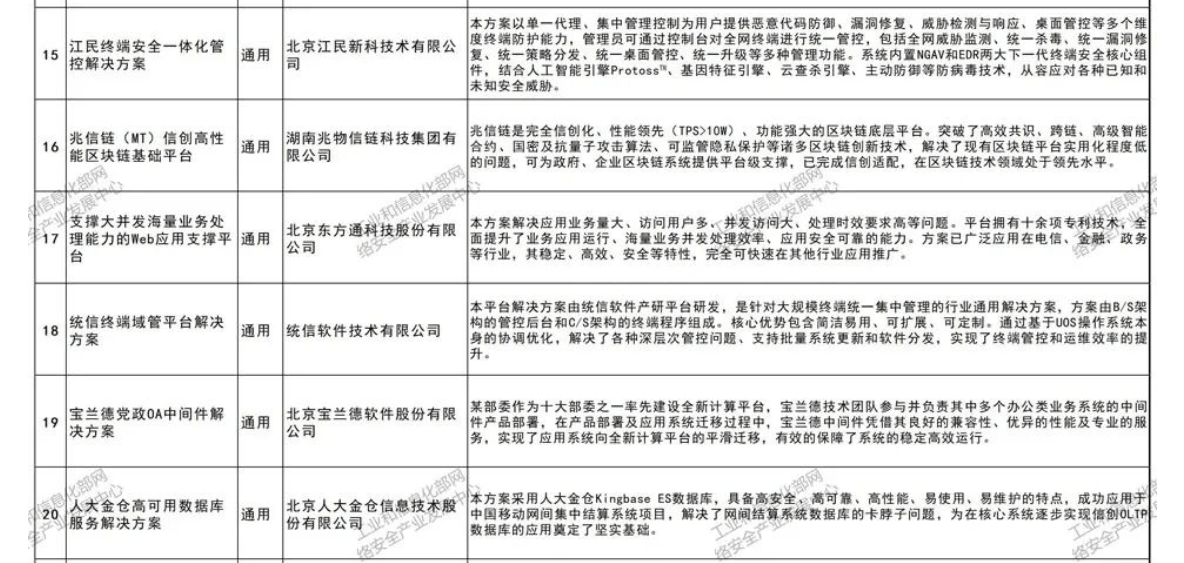 工信部信息技术应用创新典型解决方案入选名单
