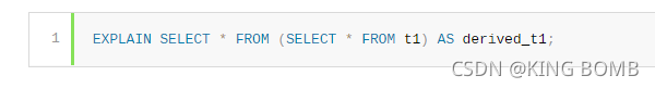 Consider the following EXPLAIN statement, for a SELECT query that contains a derived table: