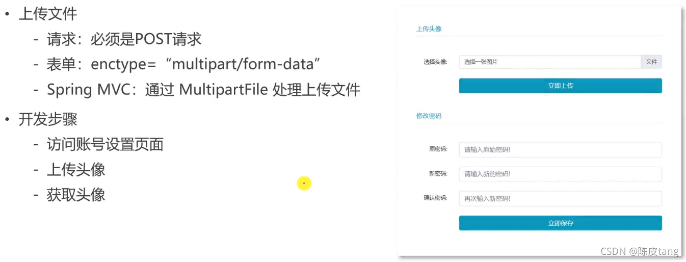 头像修改分为两步:修改用户头像的url,上传头像图片到服务器
