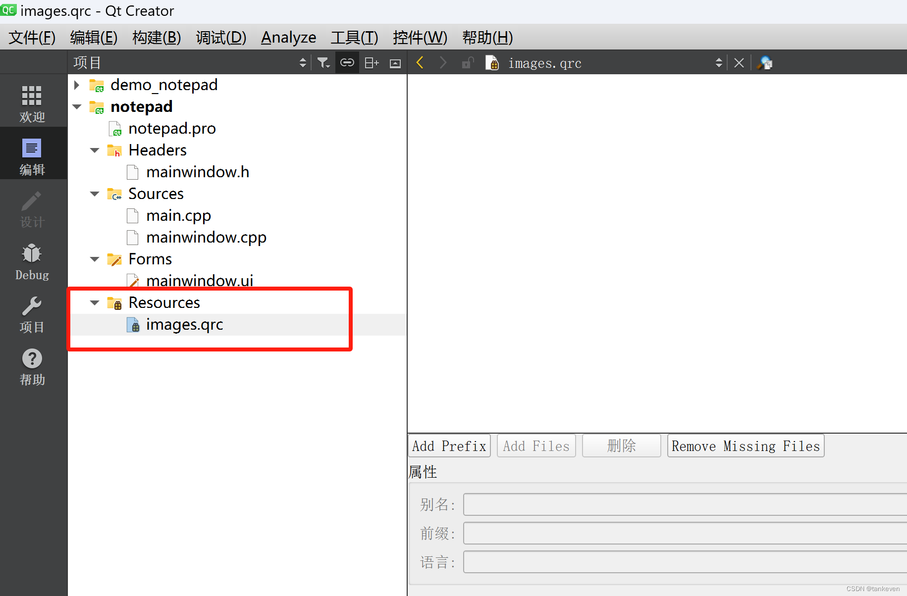 步骤:文件(F)->新建文件或项目(N)->Qt->QtResources File->choose…