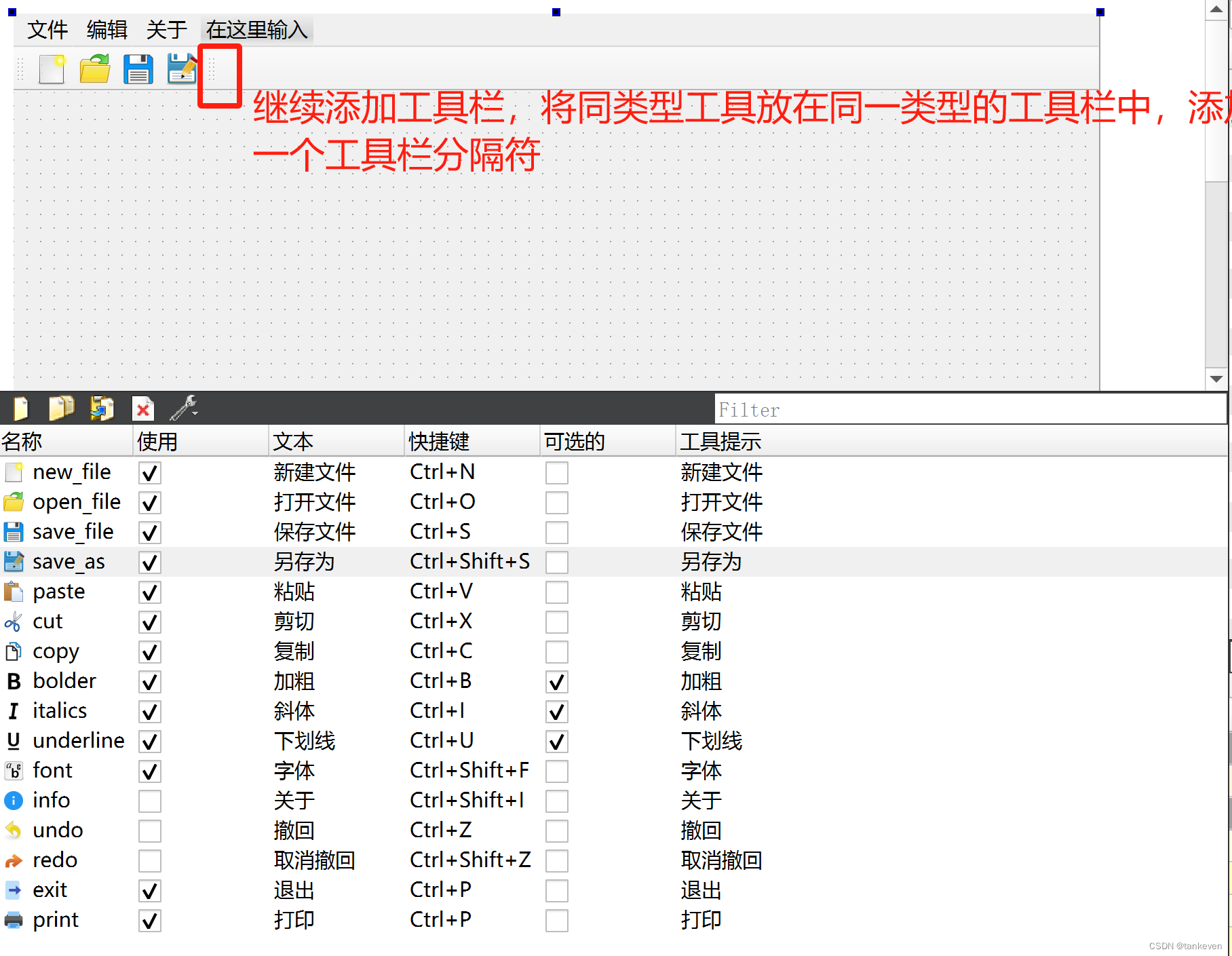 将不同类型的工具分开:鼠标右击继续添加工具栏,出现一个分隔符,此时可以新的工具栏中添加新的工具