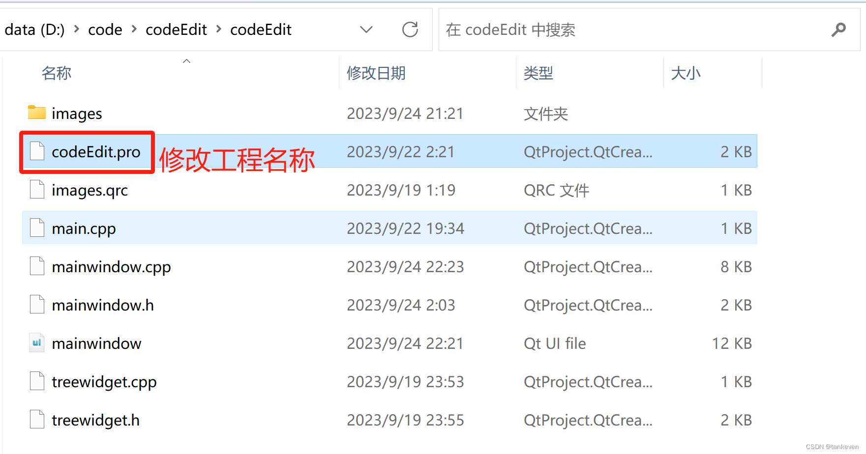 在qtcreator中关闭当前项目,然后再工程所在目录中修改项目名称即可