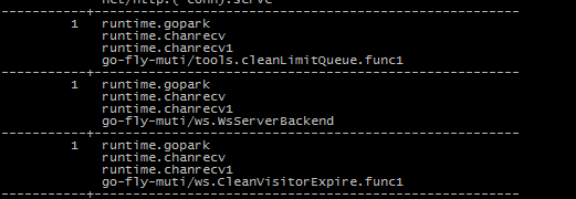重点看到了我自己开启的独立的goroutine , 找最下面的是自己写的包的调用函数