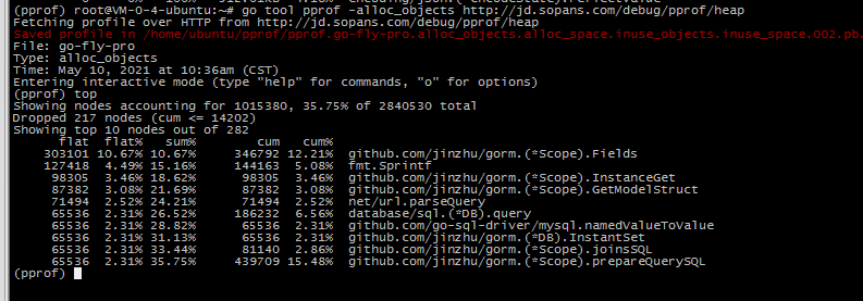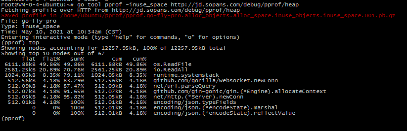 go tool pprof -inuse_space http://localhost:8081/debug/pprof/heap       输入的top命令