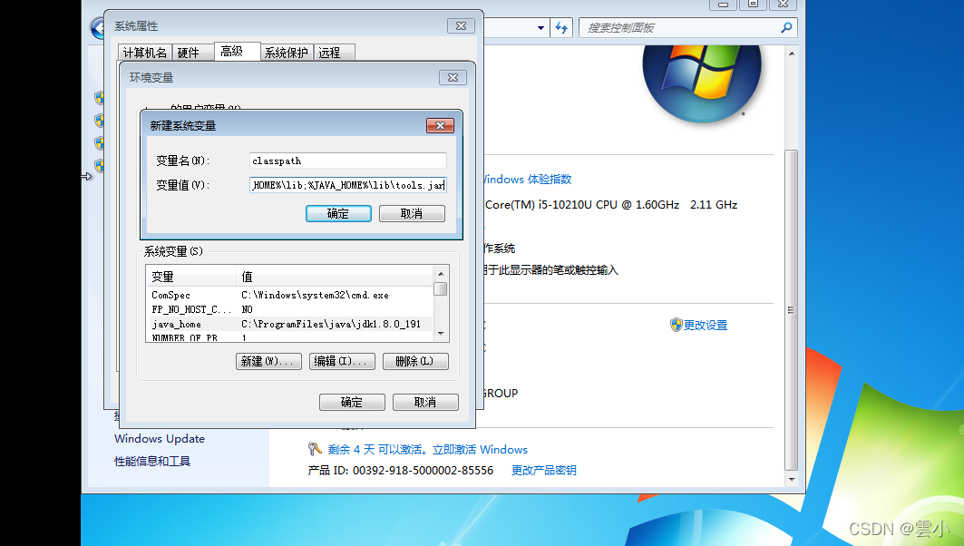 另一个变量名称为CLASSPATH ,变量值为.;%JAVA_HOME\lib;%JAVA_HOME%\lib\tools.jar