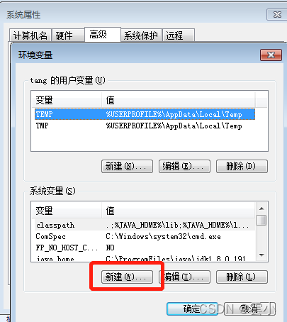 新建两个变量:一个变量名称为JAVA_HOME ,变量值为C:\ProgramFiles\java\jdk1.8.0_191