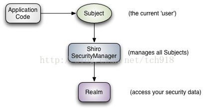 首先,来了解一下Shiro的三个核心组件:Subject,SecurityManager 和 Realms. 如下图: