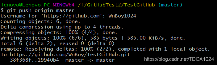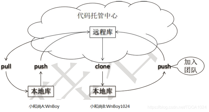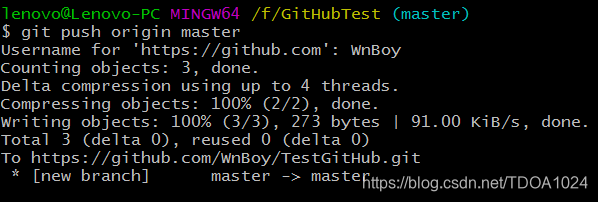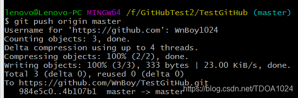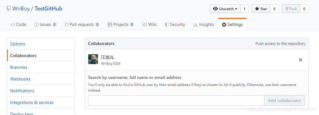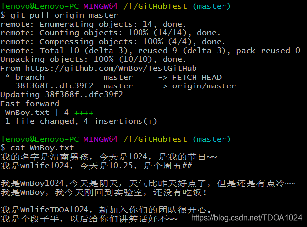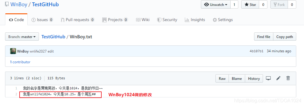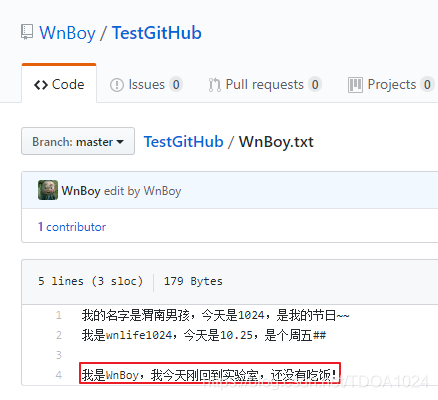 4.7.3 WnBoy添加新队员WnBoy1024之后,新队员WnBoy1024就可以把自己的修改使用自己的账户密码push上GitHub去。