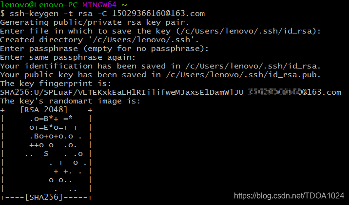 $ ssh-keygen -t rsa -C [当前GitHub的邮箱地址] [注意:这里-C 这个参数是大写的C] 一路回车