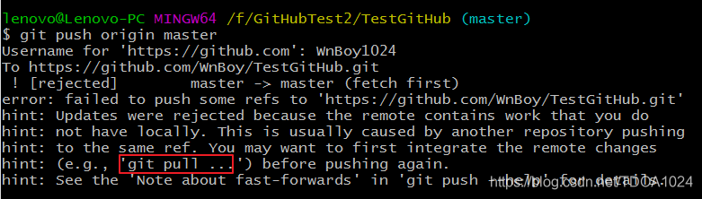 - 如果不是基于GitHub 远程库的最新版所做的修改,不能推送,必须先拉取。