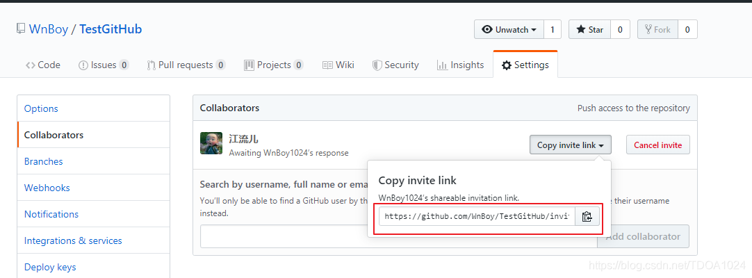 此时需要 WnBoy 在 GitHub上邀请 WnBoy1024 才可以