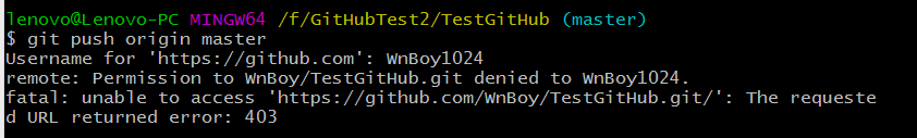队员WnBoy对 clone下来的文件进行修改,然后想用自己的账户push上GitHub,发现并不能成功